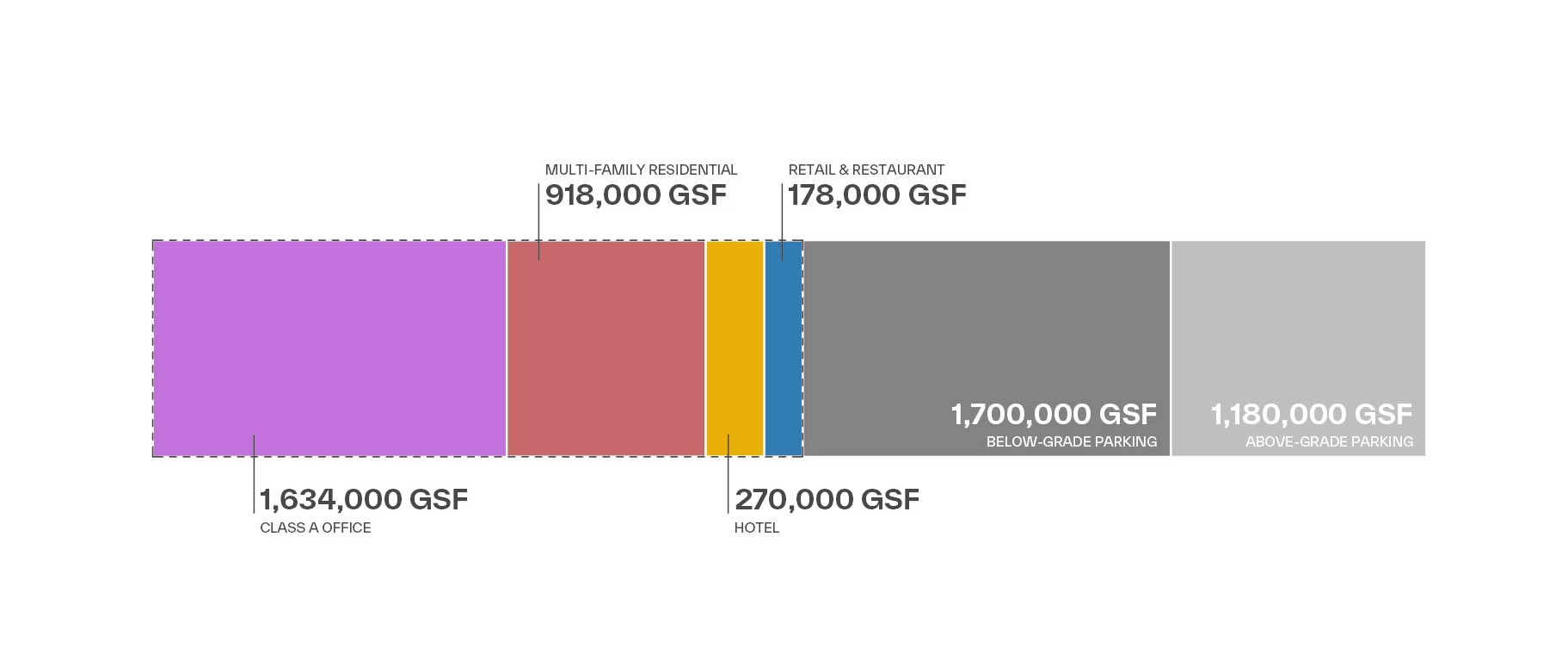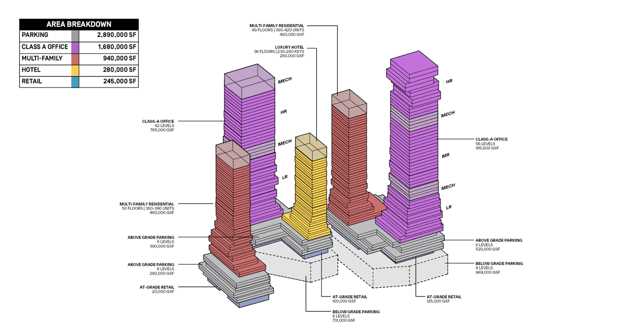 Our firm was invited by a major developer to help shape a vision for the future expansion of their district. At the conceptual level, they were not only interested in exploring the potential density and massing needed to meet financial goals, but also in establishing a distinct identity for the development—an iconic destination they called The Forum. They envisioned a vibrant, sustainable, and inspiring place: a true gift to the city that would energize the local community and draw regional visitors to the site.